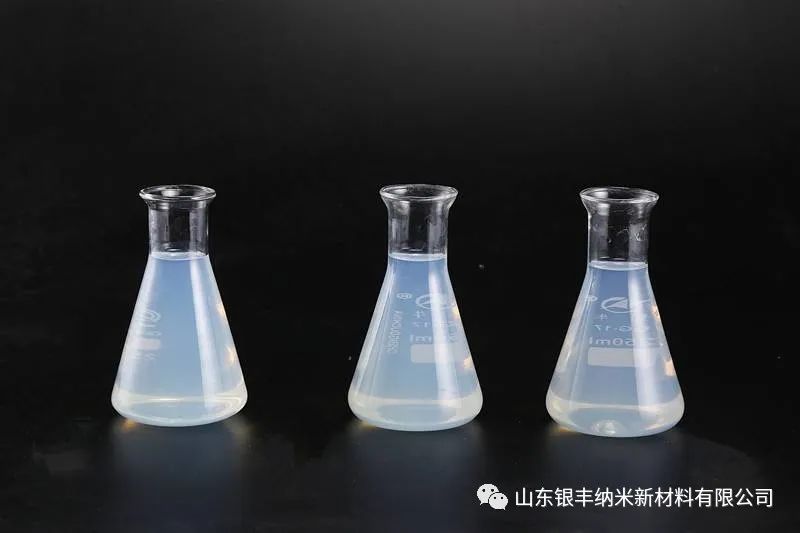 銀豐公司采用特殊的工藝制備的納米無機硅溶膠是對納米二氧化硅的改性產品,除具有納米二氧化硅的一切特性之外,還有其他不同的、更優異的性質。在生產過程中比二氧化硅粉末具有更大的應用優勢,具有使用方便、無粉塵污染、運輸便利、易儲存等特點。